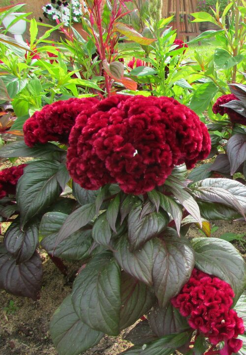 - Целозия гребенчатая "Грация" – сорт с крупными и густо расположенными цветками, создающими эффект шара.