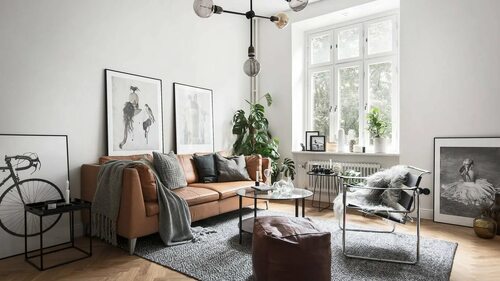Скандинавский стиль часто включает в себя использование дерева в интерьере. Поэтому коричневый диван можно сочетать с деревянными элементами, такими как столы, полки или рамы для фотографий. Это создаст единый и гармоничный образ.