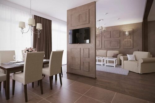 1. Цвет какао + бежевый. Это сочетание создает нежный и спокойный интерьер. Бежевые оттенки могут быть использованы в качестве основного цвета, а цвет какао - для создания акцентов.