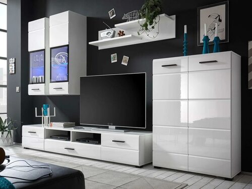 1. Светлый и просторный вид. Белый цвет визуально увеличивает пространство и делает его более светлым. Белая стенка поможет создать ощущение простора даже в небольшой гостиной.
