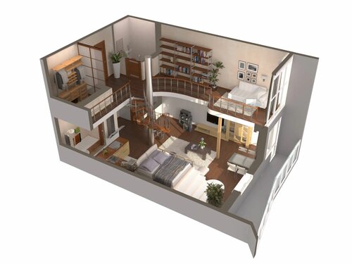 1. Увеличение площади: двухуровневая планировка позволяет визуально увеличить пространство квартиры за счет вертикального разделения.