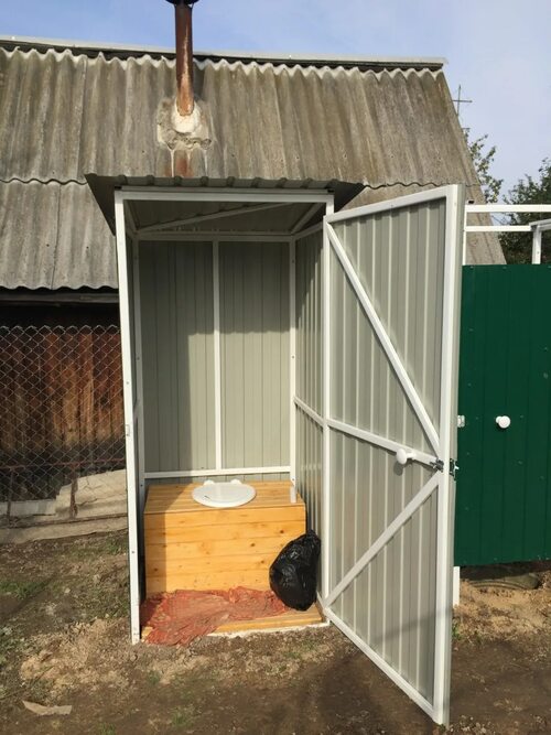 Для защиты туалета от осадков необходимо установить кровлю. Для туалета из профнастила подходит профлист, который обладает высокой прочностью и водонепроницаемостью. Кровлю следует установить на специальные деревянные или металлические стропила, обеспечивая надежную фиксацию. При необходимости можно добавить водосточную систему для сбора и отвода дождевой воды.