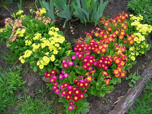Примула обыкновенная имеет яркие цветы разных оттенков и прекрасно подходит для создания ярких цветочных клумб.