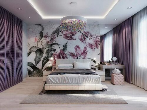 Одной из главных тенденций в современном дизайне спальни является использование нейтральных оттенков и природных материалов. Например, популярными вариантами являются обои с текстурой дерева или камня. Они создают ощущение природного уюта и гармонии, что особенно важно для комнаты отдыха и релаксации.