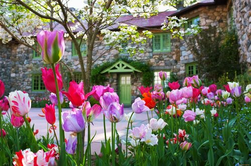 Тюльпаны - это одни из самых популярных весенних цветов. Они представлены во множестве разнообразных сортов и оттенков, от нежных пастельных до ярких и насыщенных. Вы можете создать цветочные клумбы из тюльпанов разных цветов, чтобы добавить яркие акценты в ваш сад.