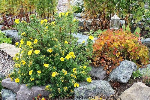 Здесь представлена лапчатка, которая красиво сочетается с другими цветами в саду. Ее яркие цветы привлекают внимание и создают неповторимую атмосферу.