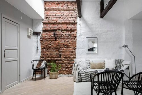 Фотографии интерьеров с использованием кирпича и штукатурки