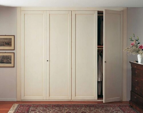 2. Классика. Встроенный распашной шкаф в классическом стиле с деревянными фасадами и изящной фурнитурой создаст атмосферу роскоши и элегантности в вашей комнате.