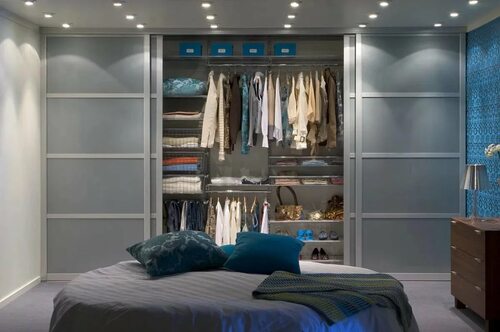 Чтобы создать стильную и практичную гардеробную в спальне с использованием шкафов купе, рассмотрите следующие идеи: