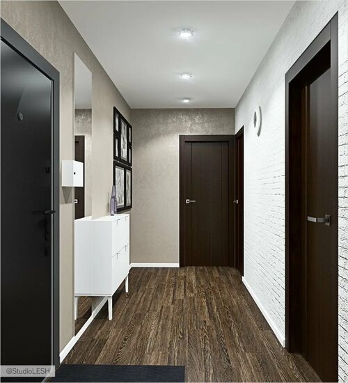 Ниже представлены несколько примеров интерьеров квартир с использованием темных дверей: