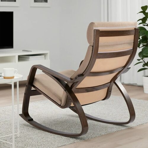 2. Модель POÄNG. Одна из самых известных моделей кресел качалок от IKEA. Она имеет классический дизайн с деревянным каркасом и мягкой обивкой. Возможность выбора различных цветов и вариантов обивки делает эту модель универсальной для любого интерьера.