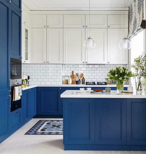 Сине-белый кухонный гарнитур можно использовать в различных стилях интерьера - от скандинавского минимализма до классического стиля. Вот несколько идей, как воплотить эту цветовую гамму в вашей кухне: