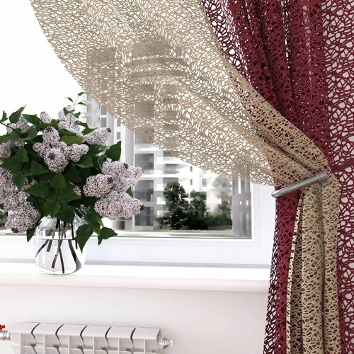 Тюль сетка выполняет функцию защиты от пыли и насекомых, благодаря своей плотной структуре. Он препятствует попаданию пыли и насекомых в помещение, сохраняя кухню в чистоте и безопасности.