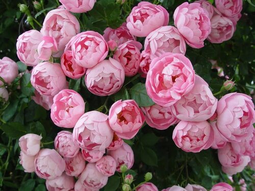 Эта разновидность имеет нежно-розовые цветки с легким ароматом. Лепестки образуют пышные махровые соцветия, которые привлекают внимание своей красотой и изумительной формой.
