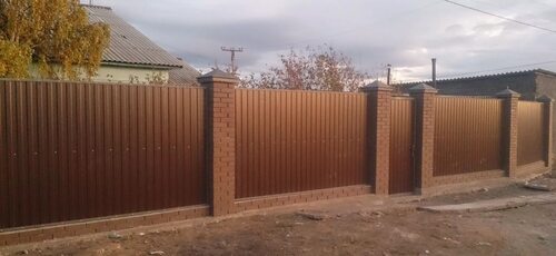 Забор из коричневого кирпича и профнастила - это элегантное и прочное решение для создания ограждения вашего участка. Благодаря сочетанию кирпича и профнастила вы получите не только безопасность и конфиденциальность, но и стильный элемент декора. Воплотите свои идеи в реальность и создайте уникальный забор, который будет радовать вас и ваших гостей на протяжении многих лет.