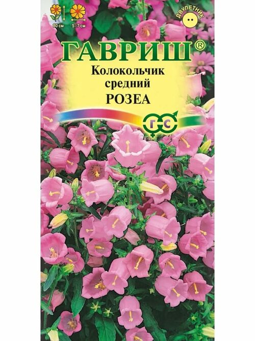 Колокольчик средний Розеа - многолетнее растение из семейства колокольчиковых (Campanulaceae). Он имеет прямостоячие стебли высотой до 80 см, покрытые грубыми волосками. Листья колокольчика среднего Розеа яйцевидной формы, зеленые, с серебристым отливом. Цветы колокольчика собраны в грозди, окрашены в нежный розовый цвет и имеют форму колокольчика, от чего и происходит его название.