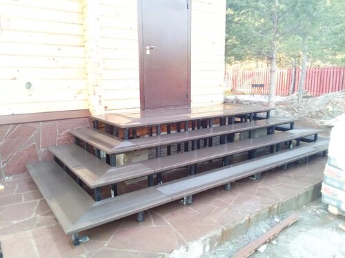 Приступайте к укладке террасной доски на металлокаркас. Начните с установки первой доски вдоль переднего края крыльца и закрепите ее к каркасу с помощью крепежных элементов. Продолжайте укладывать доски, оставляя небольшие промежутки между ними для дренажа.
