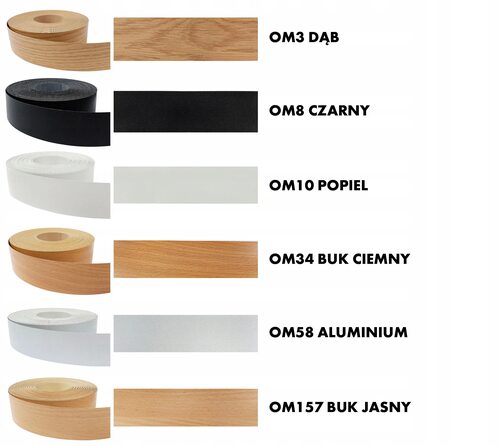 Меламиновая кромка состоит из специального покрытия, нанесенного на обработанную бумагу. Она обладает высокой прочностью и устойчивостью к истиранию. Примеры названий меламиновых кромок: "Белый дуб", "Темный орех", "Серый металлик".